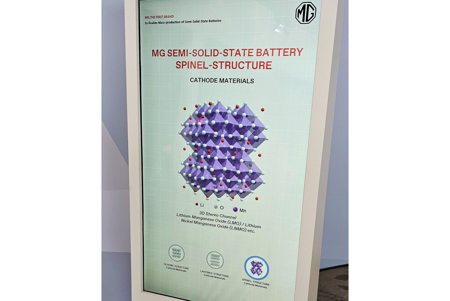 Η MG επενδύει σε καθόδια πλούσια σε μαγγάνιο, όπως οξείδιο λιθίου-μαγγανίου (LMO) και οξείδιο λιθίου-νικελίου-μαγγανίου (LNMO). Η συγκεκριμένη προσέγγιση προσφέρει υψηλότερη τάση και αυξημένη ενεργειακή πυκνότητα, άρα μεγαλύτερη αυτονομία με το ίδιο βάρος.