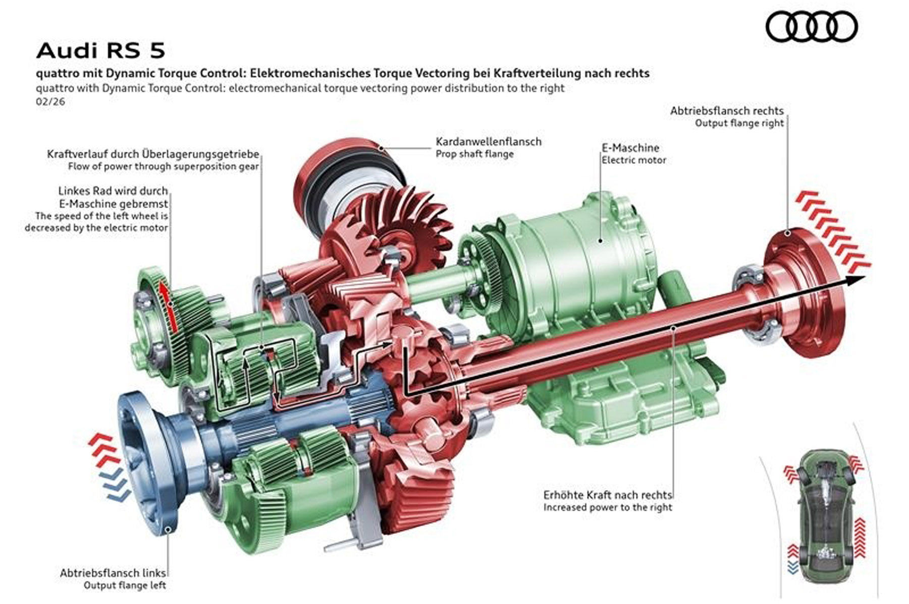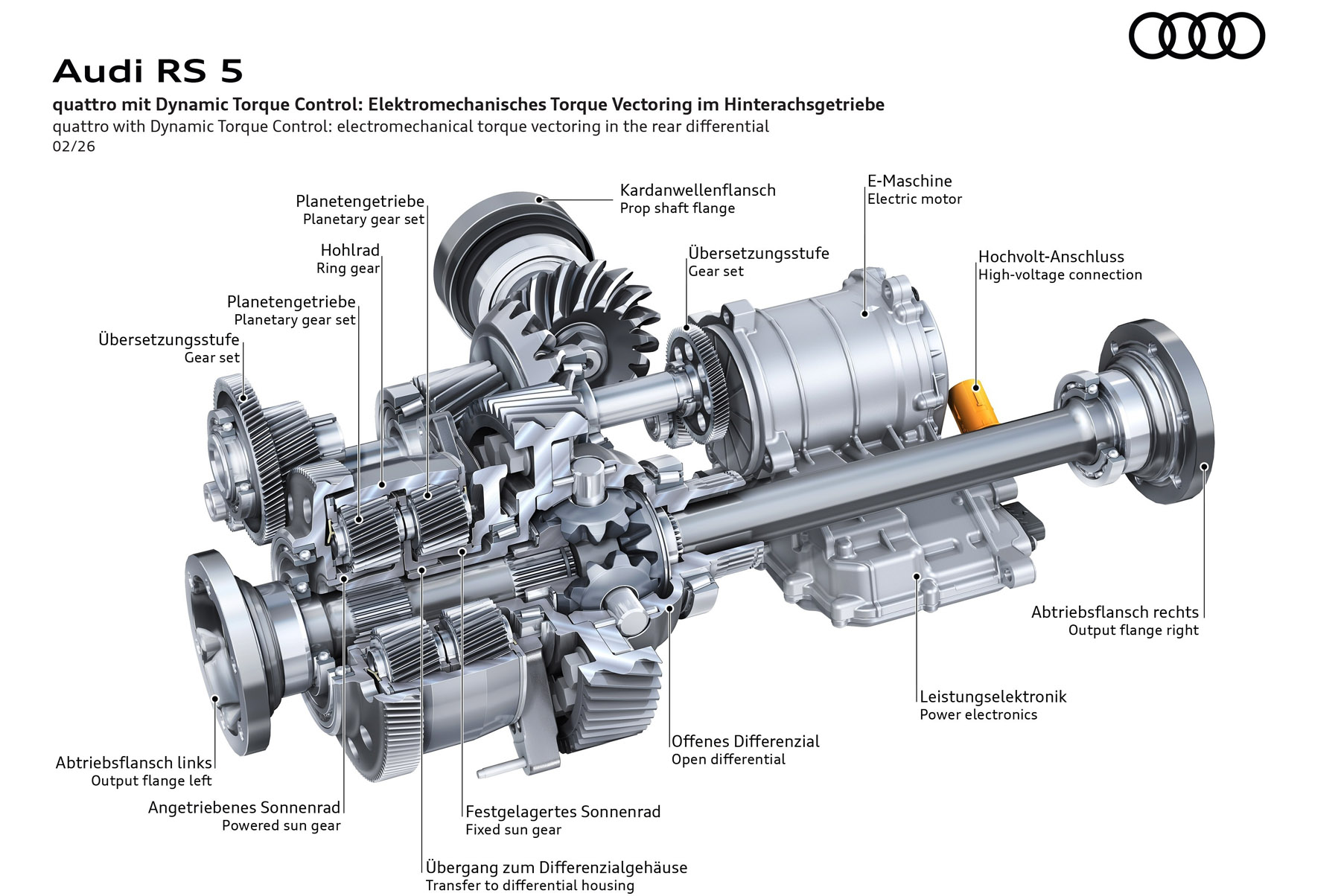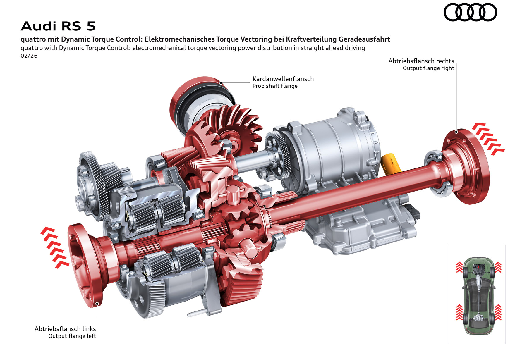 Η Audi εξελίσσει το νέο Audi RS 5, το οποίο υιοθετεί για πρώτη φορά ένα plug-in hybrid σύστημα υψηλών επιδόσεων, συνδυάζοντας ισχύ και αποδοτικότητα. Παράλληλα, παρουσιάζει μια νέα γενιά τετρακίνησης με την ονομασία «quattro with Dynamic Torque Control», η οποία αλλάζει ριζικά τον τρόπο που μεταφέρεται η ροπή στους πίσω τροχούς.