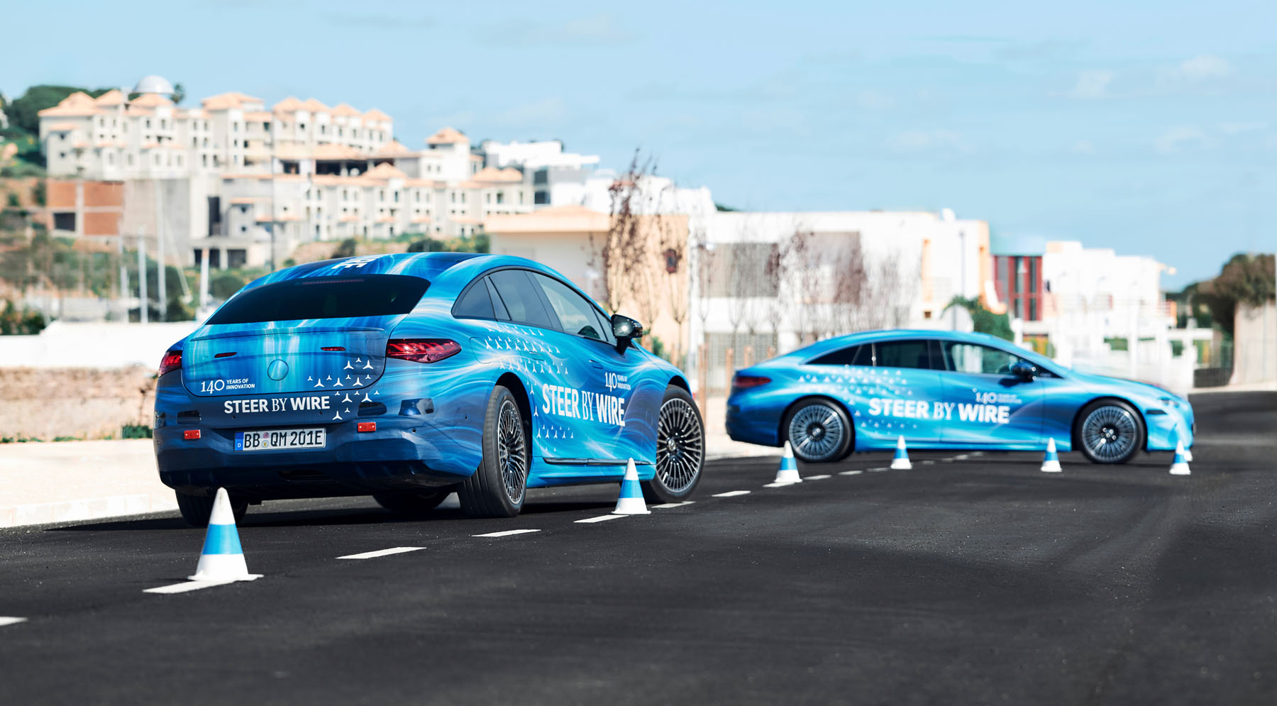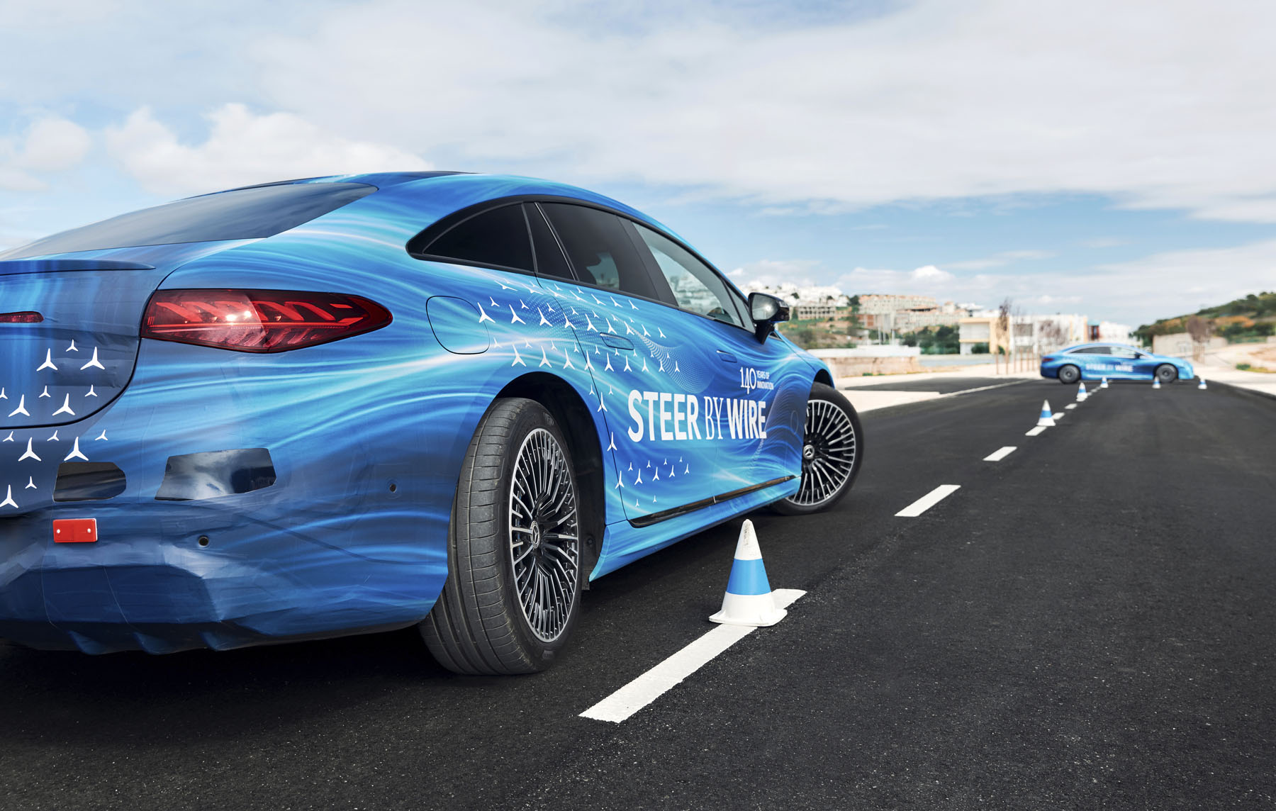 Στην πράξη, αυτό μεταφράζεται σε πιο εύκολους ελιγμούς στην πόλη και στο παρκάρισμα, ενώ σε υψηλές ταχύτητες βελτιώνεται η σταθερότητα. Το steer-by-wire συνεργάζεται με την τετραδιεύθυνση της EQS, με τους πίσω τροχούς να στρίβουν παράλληλα με τους εμπρός σε υψηλές ταχύτητες, ενισχύοντας την ασφάλεια και την αίσθηση ελέγχου.