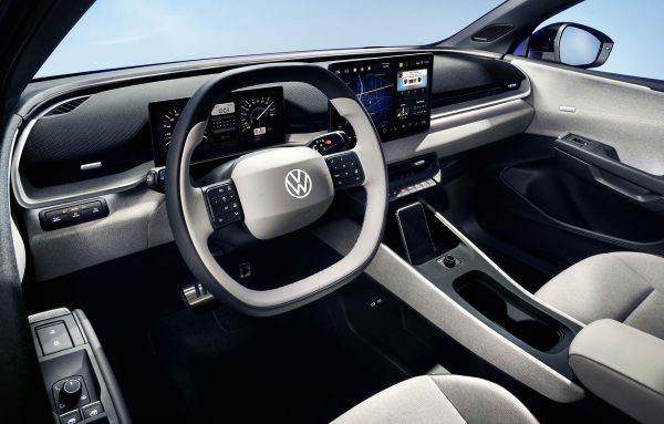 Στο εσωτερικό, η εικόνα είναι σαφώς πιο προσεγμένη σε σχέση με προηγούμενα ID. Ο ψηφιακός πίνακας οργάνων 10 ιντσών και η κεντρική οθόνη 13 ιντσών συνδυάζονται με φυσικούς διακόπτες για βασικές λειτουργίες, όπως ο κλιματισμός.