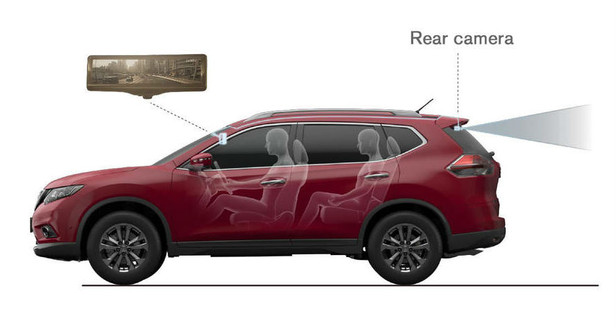 Nissan, εσωτερικός καθρέπτης με οθόνη.