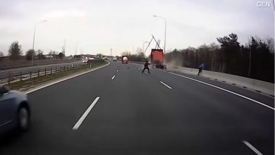 Αυτοκίνητο πάνω σε διώροφο τρέιλερ βρίσκει σε γέφυρα [vid]