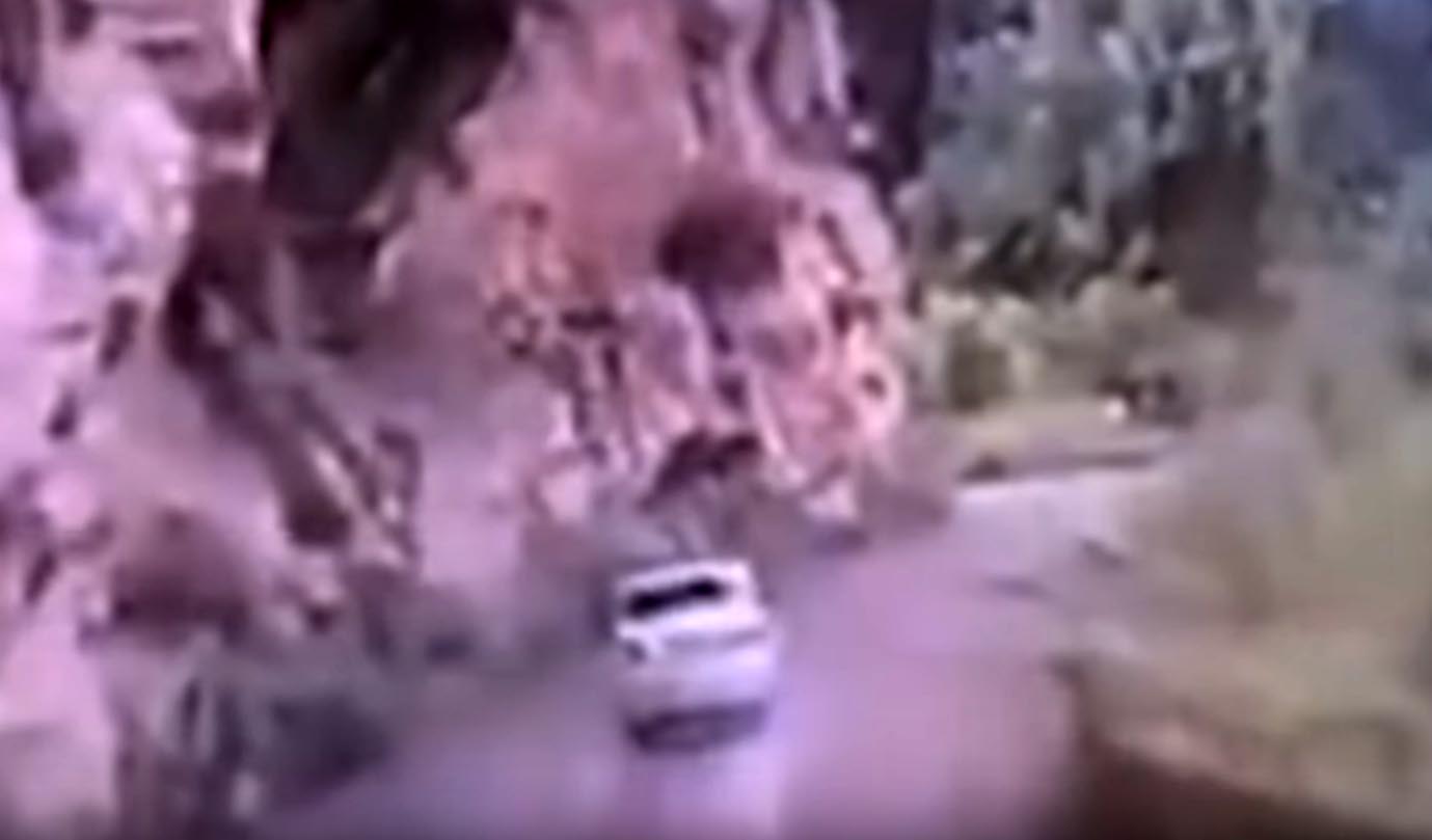 Βράχος ξεκολλάει από βουνό και πέφτει πάνω σε αυτοκίνητο [vid]