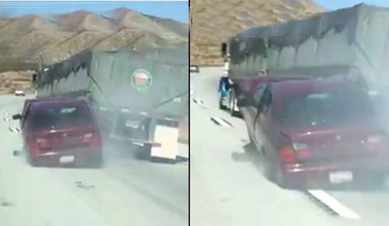 Μία νταλίκα έσερνε ένα αυτοκίνητο για 6 χιλιόμετρα! [vid]